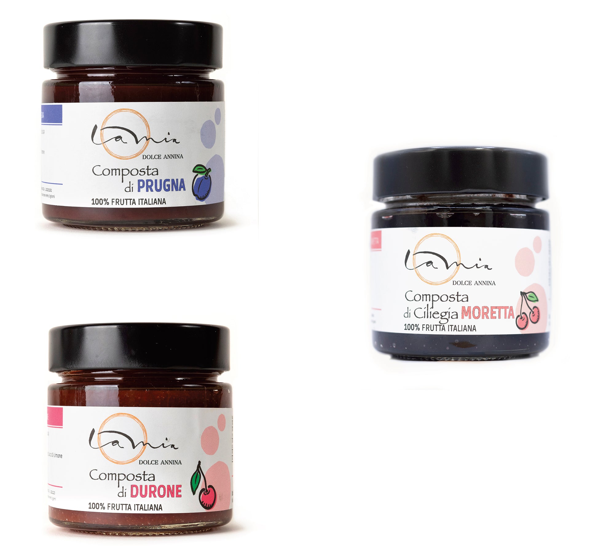 I famosi Duroni, la storica e unica ciliegia Moretta, le gustosissime Prugne! Frutta attentamente selezionata da produttori di zona, e lavorata perché sprigioni nelle composte tutta la sua naturale dolcezza.